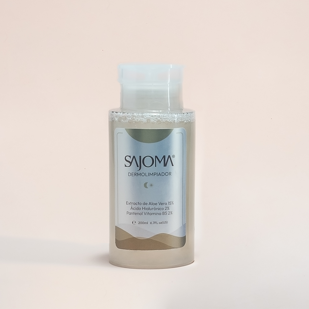 Nuestro dermolimpiador con Aloe Vera y Ácido Hialurónico elimina suavemente el maquillaje, las bacterias y la suciedad acumulada, dejando tu piel limpia y fresca. Previene el acné y los signos de envejecimiento, mientras hidrata y mejora la elasticidad de tu piel. Incorpora este paso esencial en tu rutina diaria para una piel radiante y saludable.